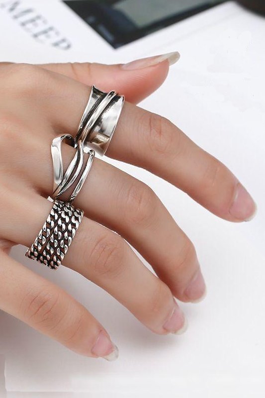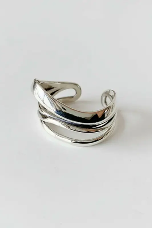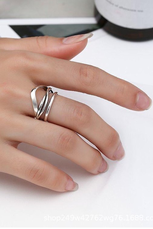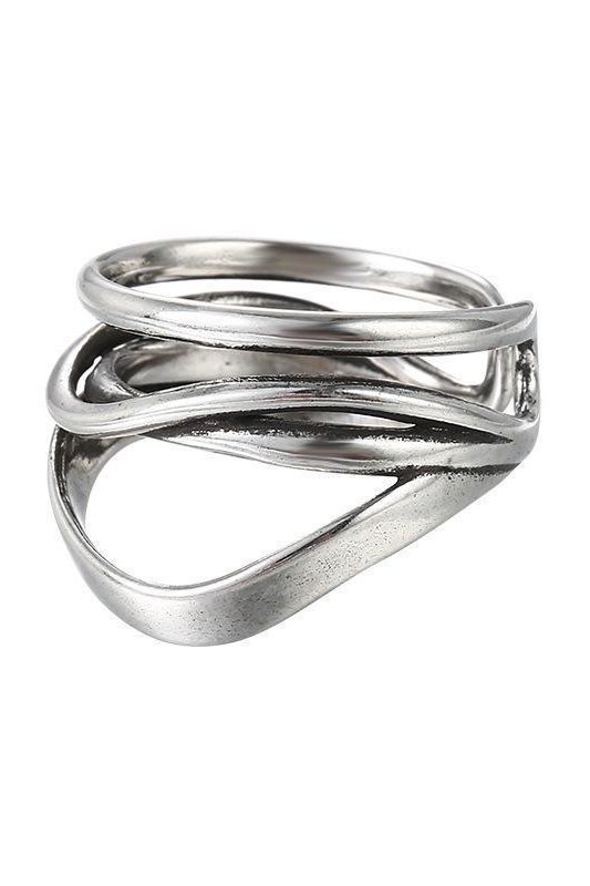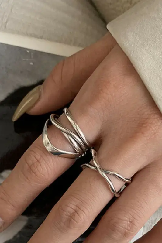 Anél vintage em prata com design cruzado.