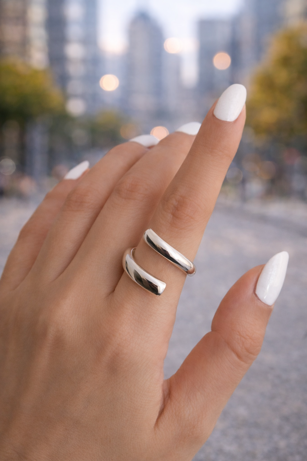 Este anel geométrico é elegante, estiloso, durável e moderno. Totalmente ajustável e com design aberto, você pode usá-lo em qualquer dedo, basta apertar ou puxar levemente para ajustar o tamanho. Perfeito para usar sozinho ou para criar um look completo, combinando-o com outros anéis de formatos diferentes.