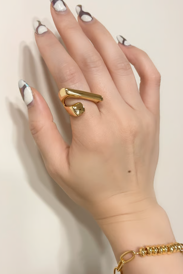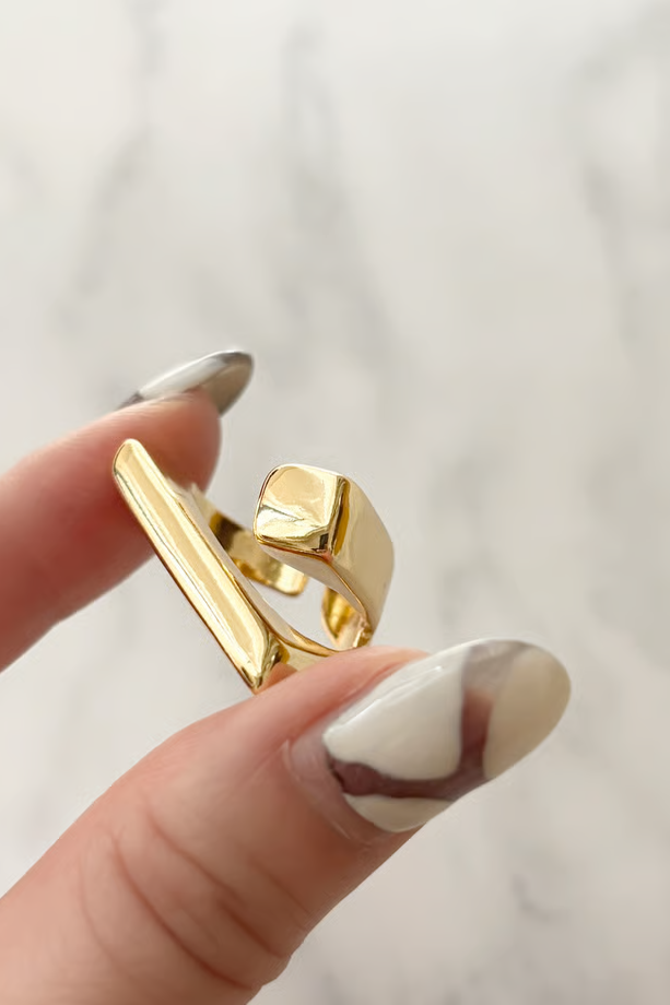 Anel com design moderno e elegante. Prata de lei 925 – Acabamento polido. – Modelo aberto e ajustável.Tamanho:AjustávelCor: Banho Dourado