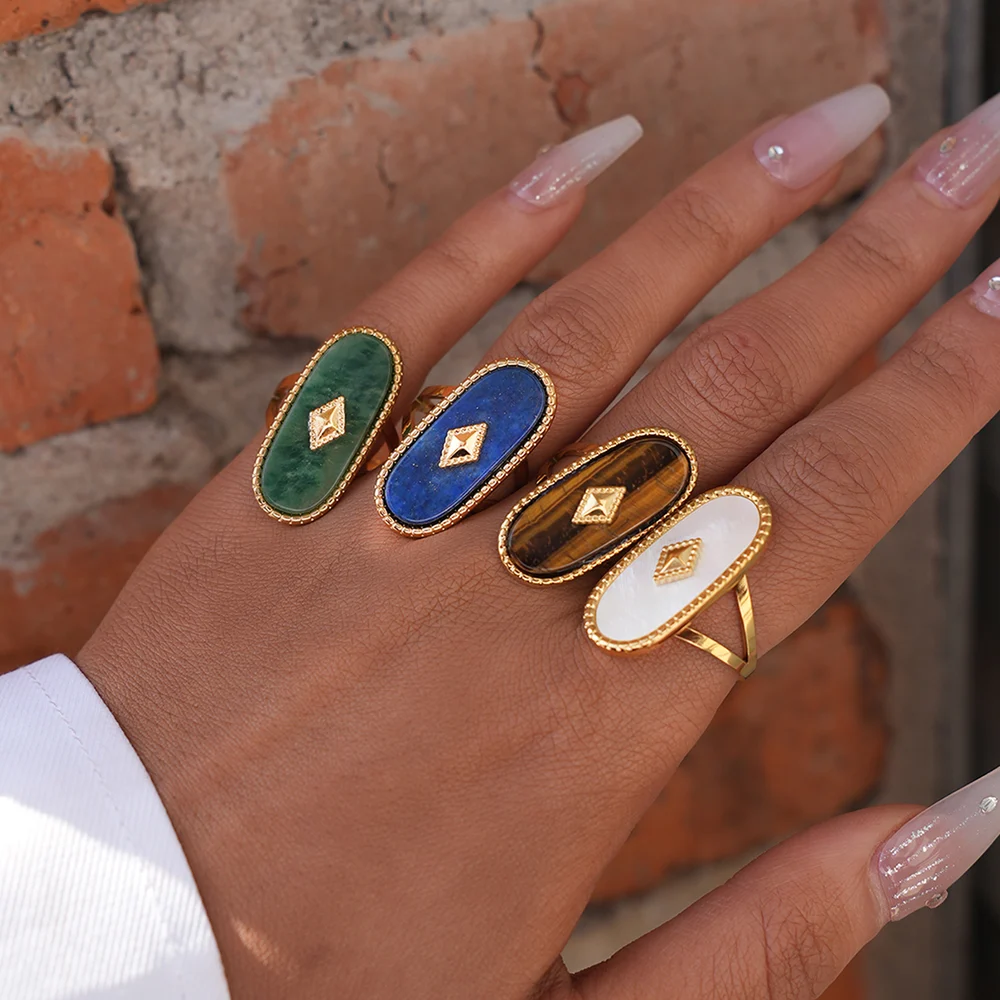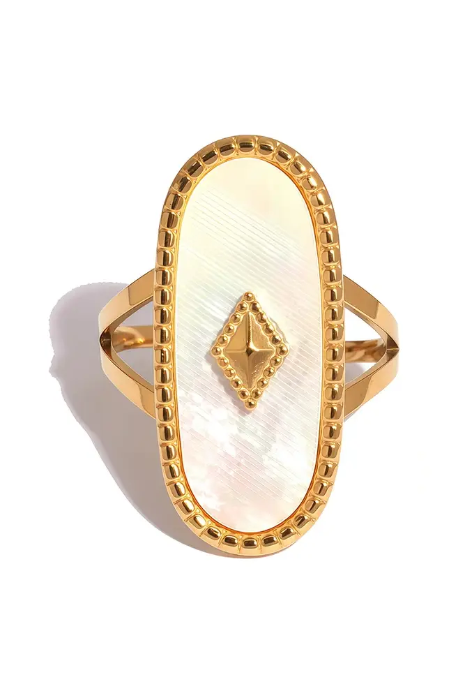 MaterialAço inoxidávelFormato irregularMaterial de RevestimentoOuro 18K ChapadoTipo de ajusteAjustávelPeso12gDimensões4cm x 2cm x 3cm - Informação adicional