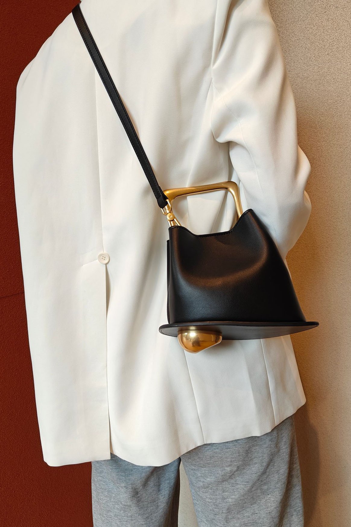 Bolsa de couro com alça de metal com design artístico geométrico14 de Novembro, 2025