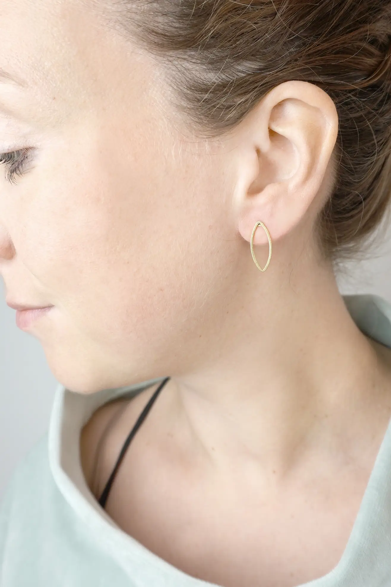 Delicados brincos de botão em latão bruto com pino de aço inoxidável. Sem níquel e sem chumbo.