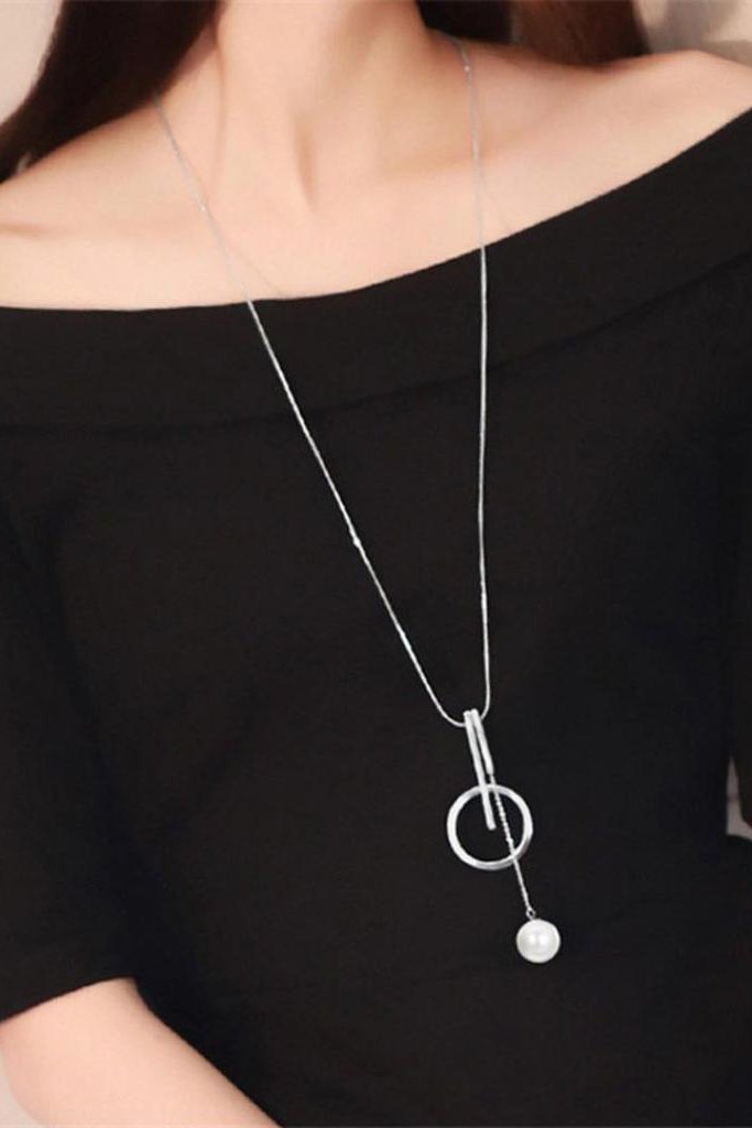 Características: Pingente circle/bar, Imitação Pérola, Corrente de Camisola, Longo