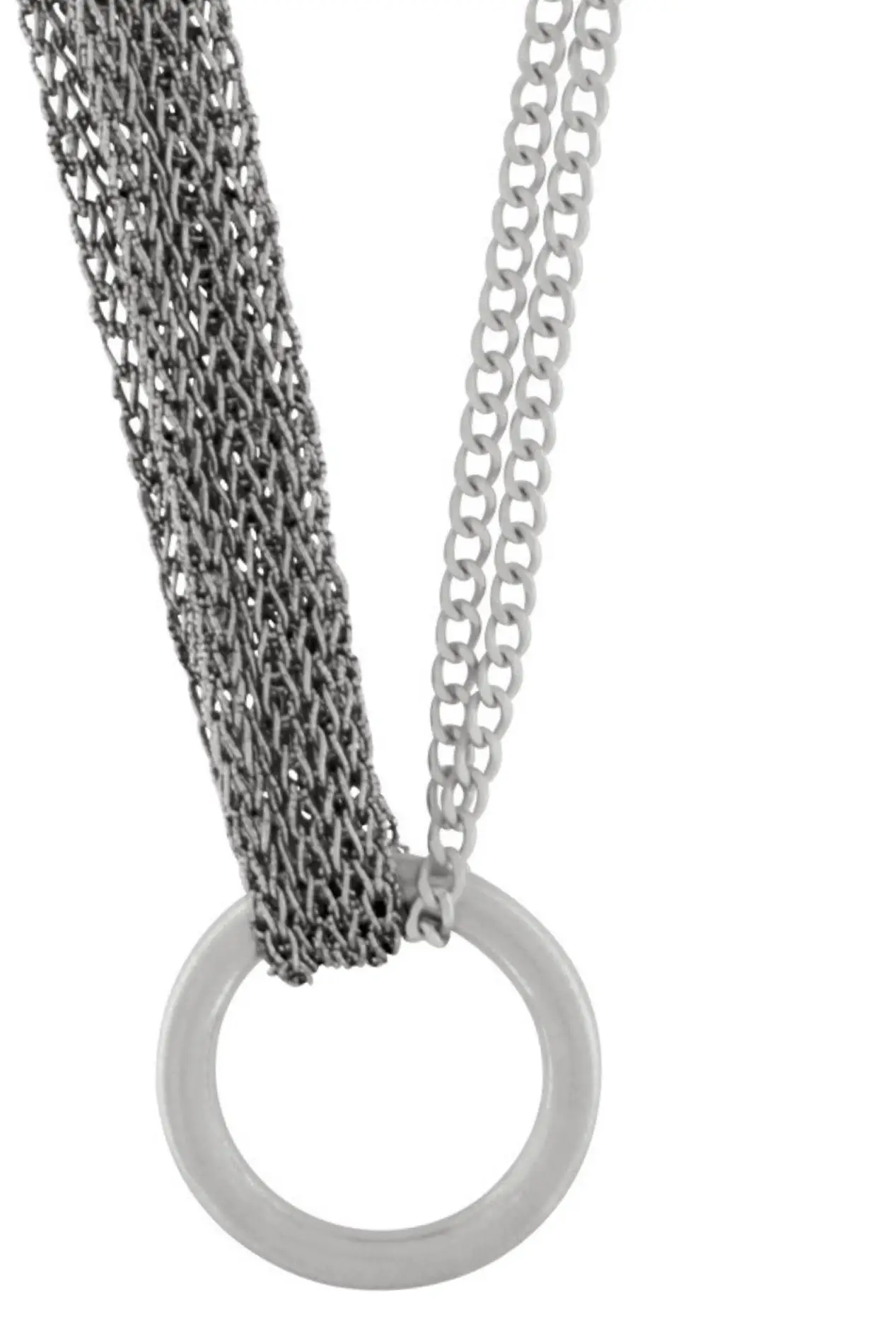 Colar de Anel Mega Tricotado Banhado a Prata