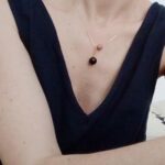 Colar Oskar – Conta rosa de rodhonita simples – Conta de madeira preta – Componentes de latão banhado a ouro – O comprimento da corrente é de 44 cm a 17 polegadas