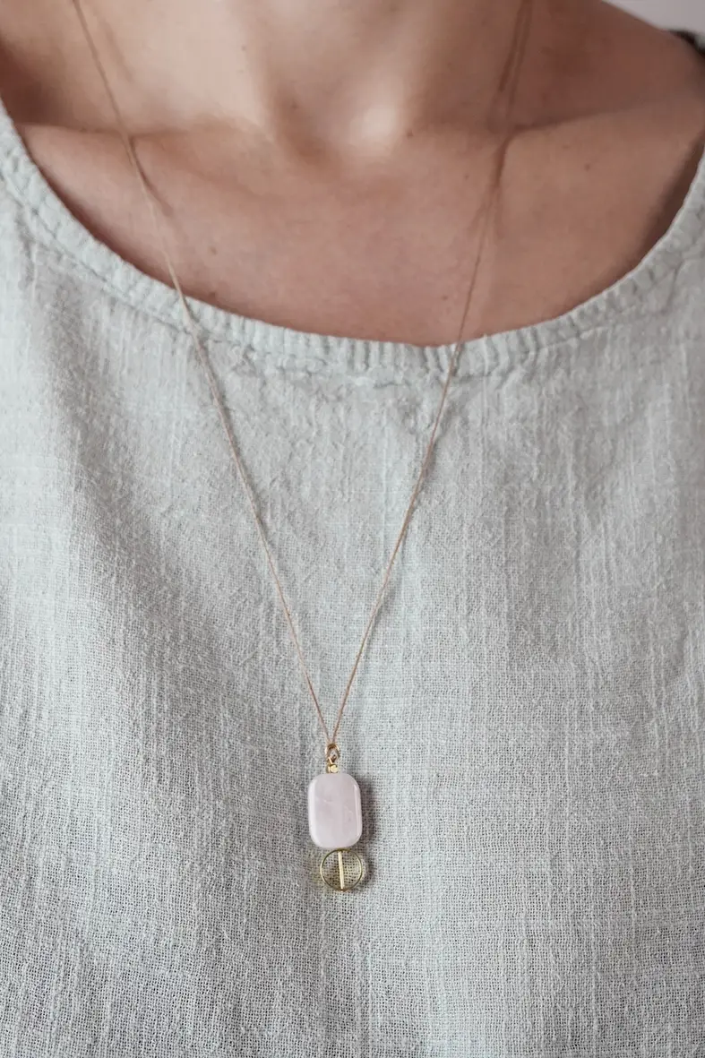 Um lindo quartzo rosa combinado em um jogo geométrico – um ótimo acompanhante! A fita é ajustável em comprimento, resistente ao rasgo e pode molhar-se. Pedra semipreciosa e latão, sem níquel e sem chumbo cordão sintético