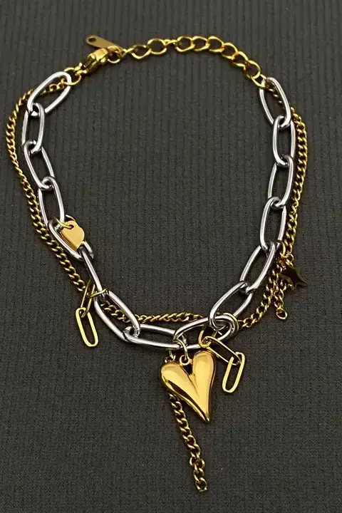 Pulseira de Dois Tons com Pendente de Coração em Aço10 de Abril, 2026