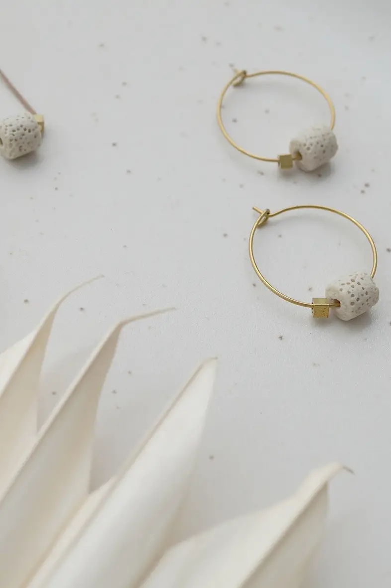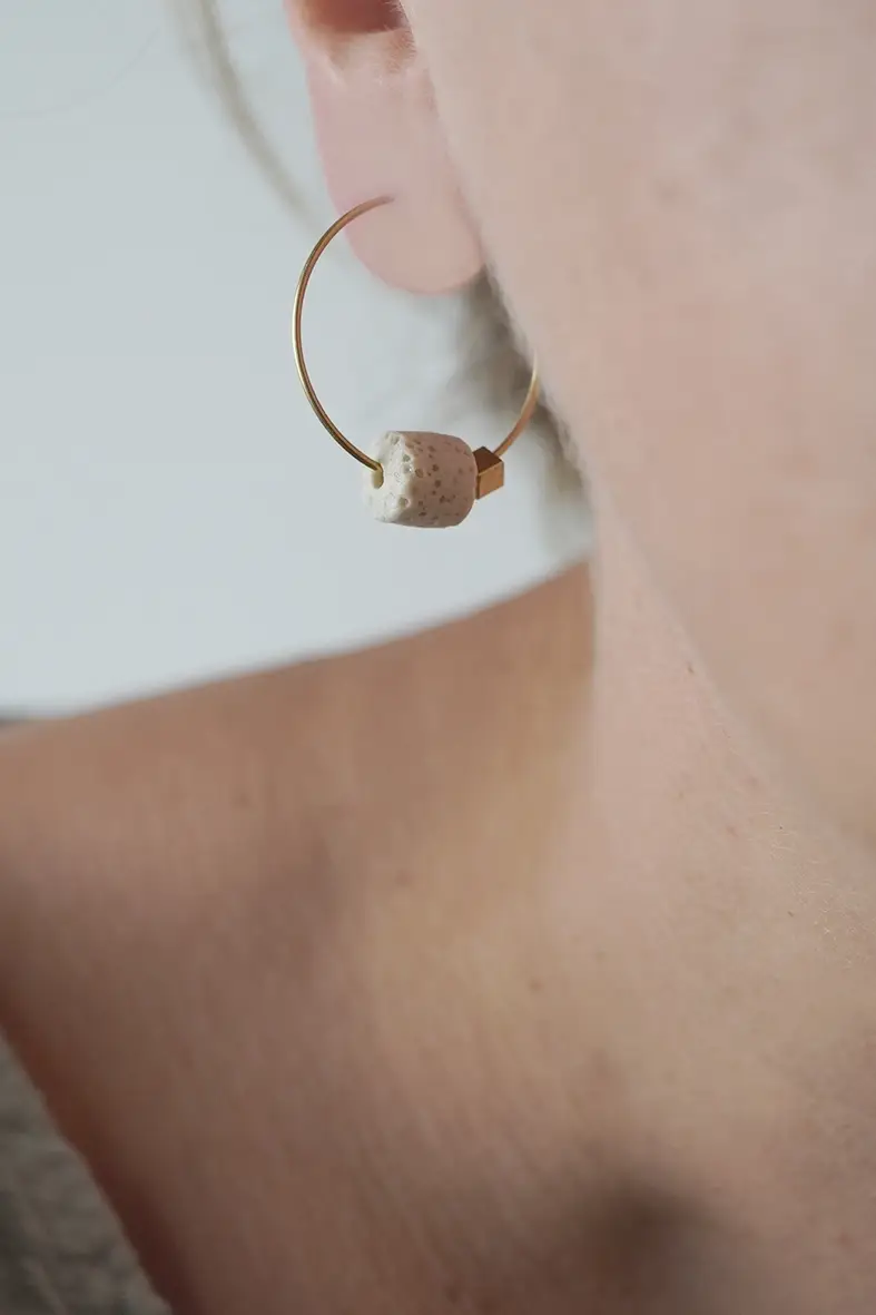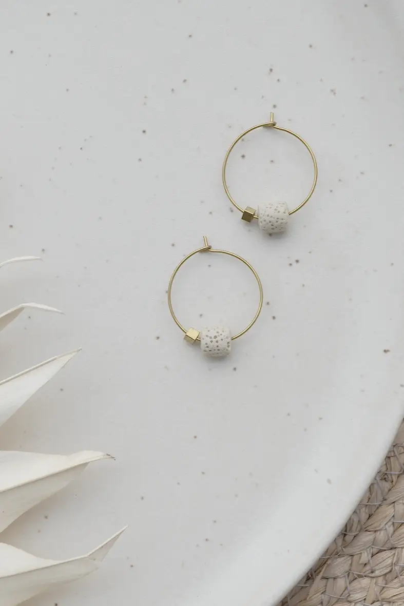 Uma pequena pérola de lava colorida adorna os brincos de argola. As joias são um acompanhante especial e podem ser combinadas de várias maneiras. Pedra semipreciosa e latão, sem níquel e sem chumbo Diâmetro da argola 2,5 cm